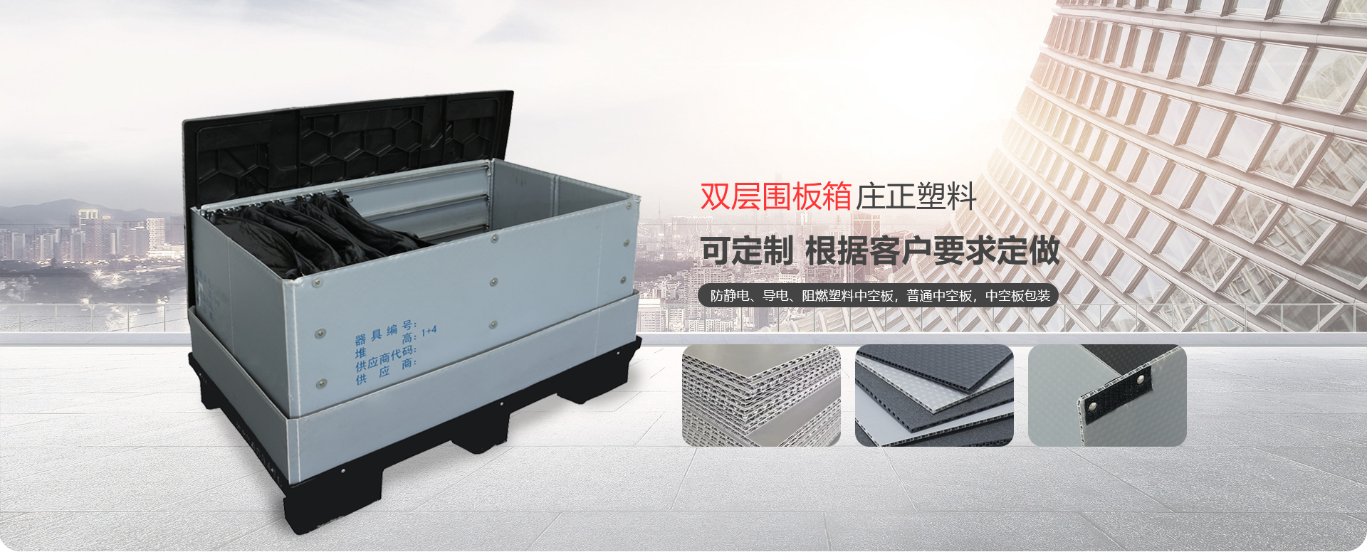 威海莊正塑料中空板有限公司是一家專注于圍板箱產品和中空板產品研究、開發(fā)、生產及銷售的高科技企業。我司專業生產銷售圍板箱、防靜電、導電、阻燃塑料中空板,普通中空板,中空板包裝等。是一家及研發(fā)、設計、生產、銷售一體化的專業制造商。產品具有質輕、防潮、耐油污、抗腐蝕、無毒、無污染顏色豐富的新型環(huán)保產品。 主要產品:圍板箱、普通塑料中空板,防靜電、導電塑料中空板,中空板周轉箱,中空板包裝箱,中空板墊板,中空板托盤、塑料包裝制品等系列產品。